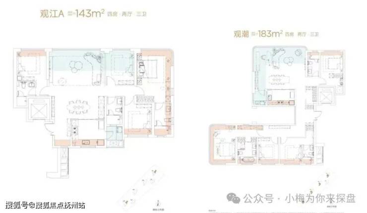 城建江南岸户型图已经更新,也是标准的准四代户型,目前公布有143、183㎡两个户型。算上赠送面积,得房率最高可达113%。而且户型是专门为了看江而优化的,主卧和客厅都有较好的看江视野,尤其是183㎡户型,客厅是270°无遮挡看江。