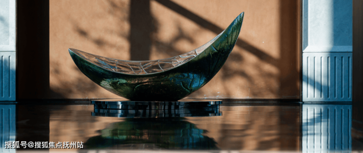 进入归家大厅,“羽翼之境”背景墙成为视觉的焦点。无数片龙鳞铜片在灯影下起伏,如同振翅的翎羽,赋予建筑呼吸感。这种灵动在左右偏厅的艺术装置中得到了延续。