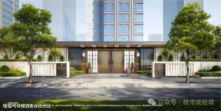 •经典三段式建筑肌理,采用类公建大面积玻璃幕墙,搭配金属铝板和真石漆涂料,顶部采用雅奢鎏金塔冠造型,构筑公馆美学建筑立面。