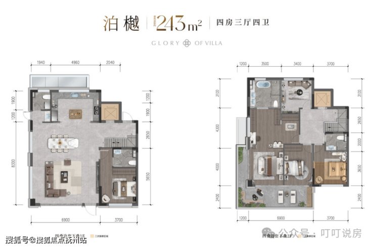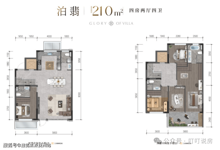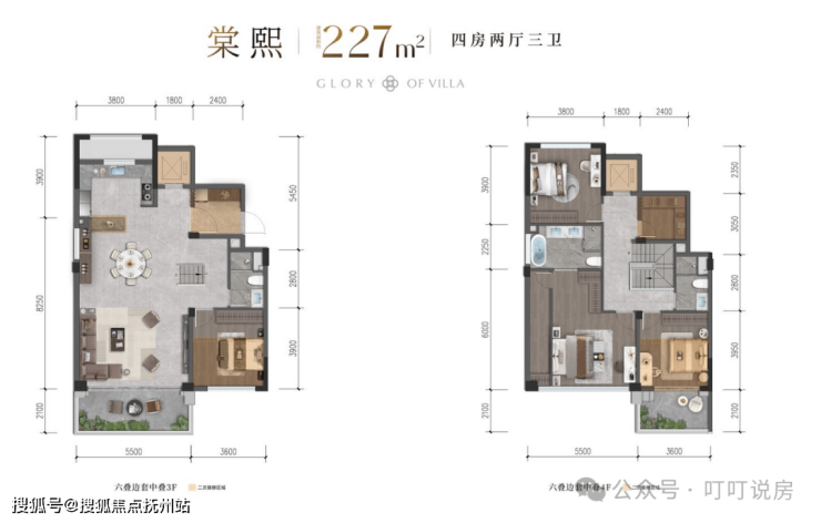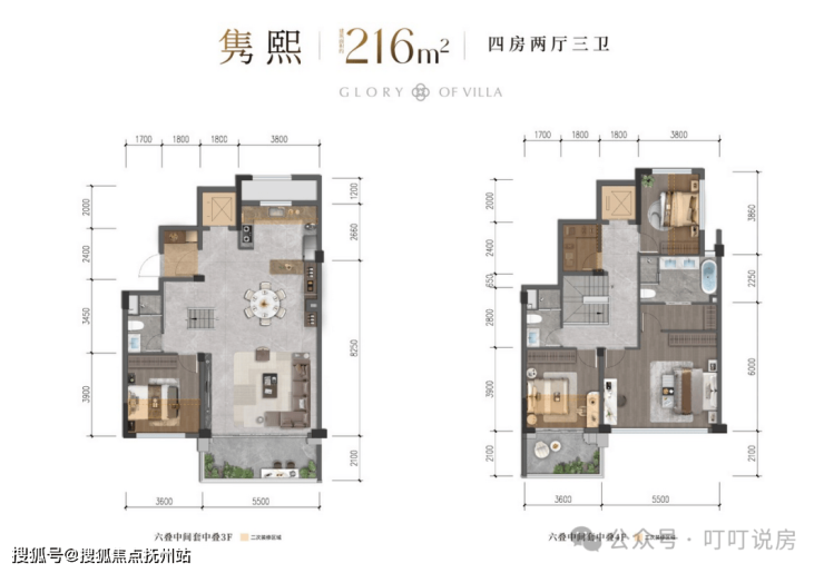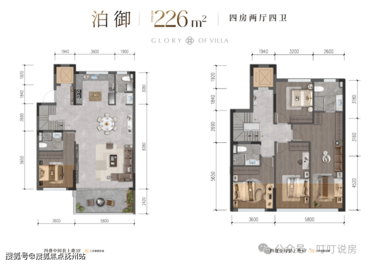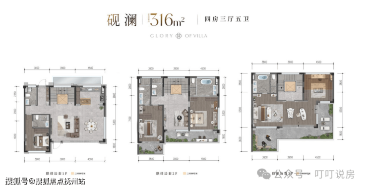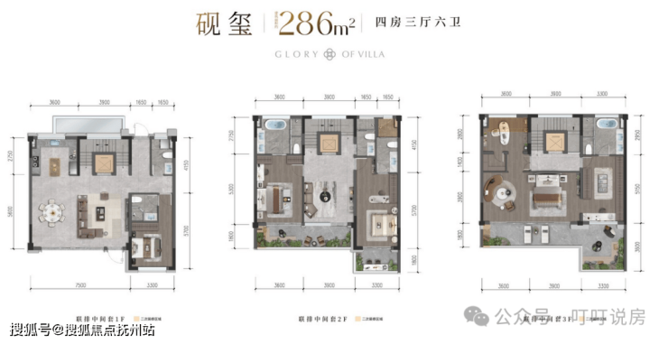 联排就2个户型,边套316㎡和中间套286㎡。