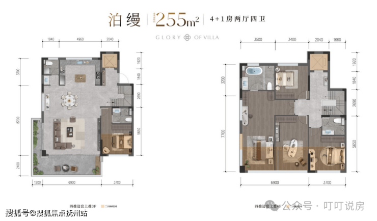叠墅户型较多,从210-255平不等。