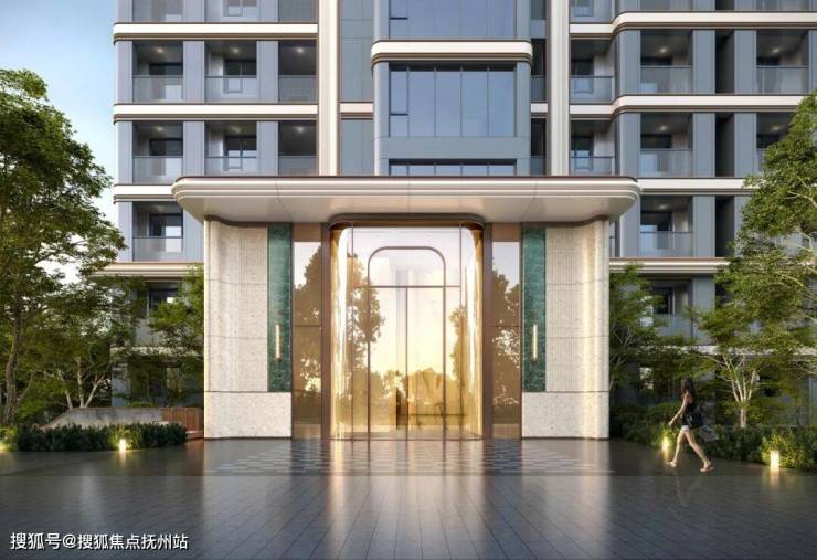 在建筑表现上,玖瑞府选择了“海派风格”作为基调。住宅立面采用去风格化的设计手法,强调横向线条的展开,形成优雅舒展的建筑效果。直线与弧线的组合交织,使建筑轮廓简洁而富于变化。