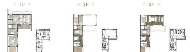 别墅:A户型约270㎡(三层/三房两厅四卫/26套)、B户型约310㎡(三层/三房两厅四卫/17套)、C户型约335㎡(三层/三房三厅五卫/6套)、D户型约365㎡(三层/三房三厅五卫/3套)、E户型约390㎡(二层/四房三厅四卫/4套)。平层:220㎡(四房两厅三卫/48套)