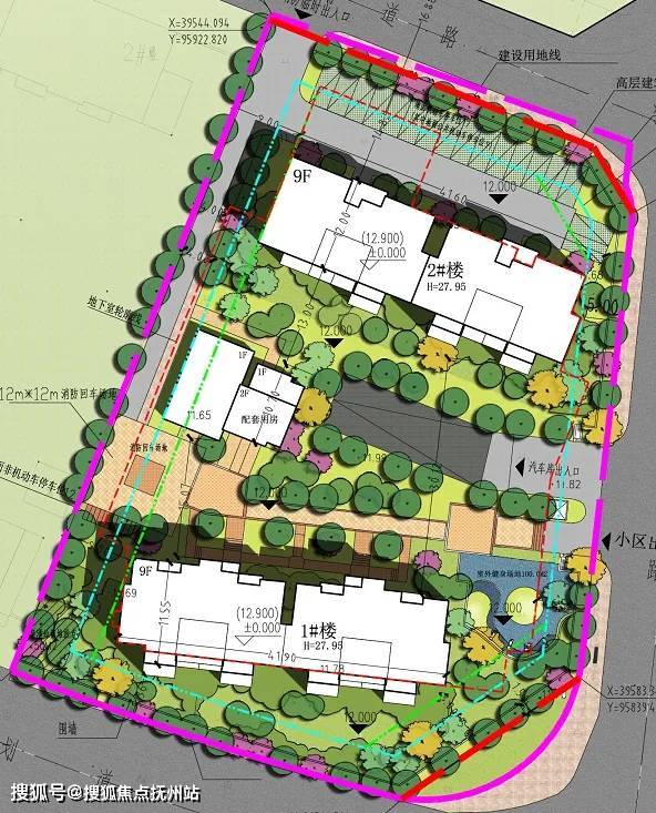 项目规划 2 幢 9 层小高层,楼高约 28m,总户数为 72户。
