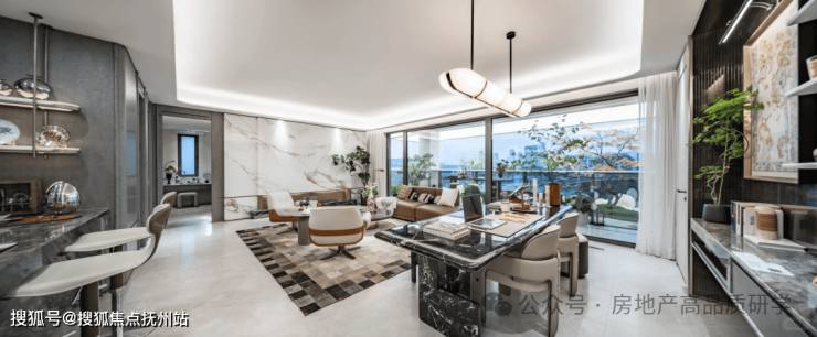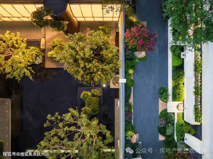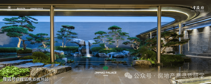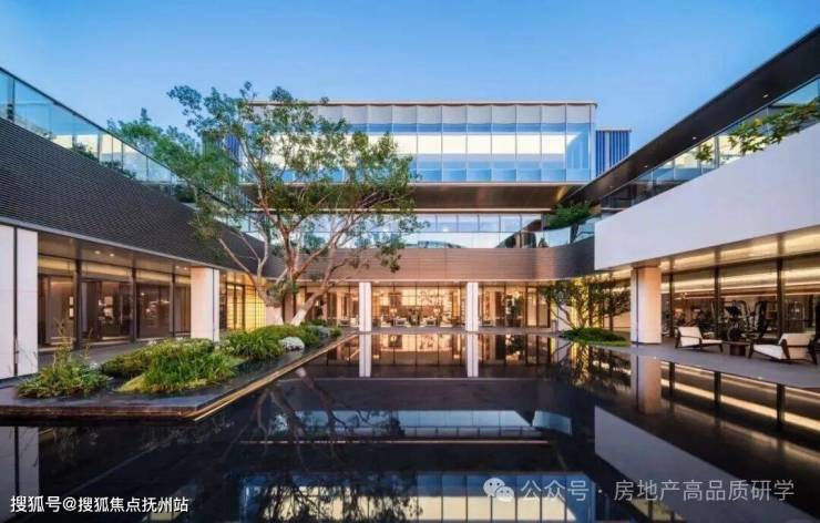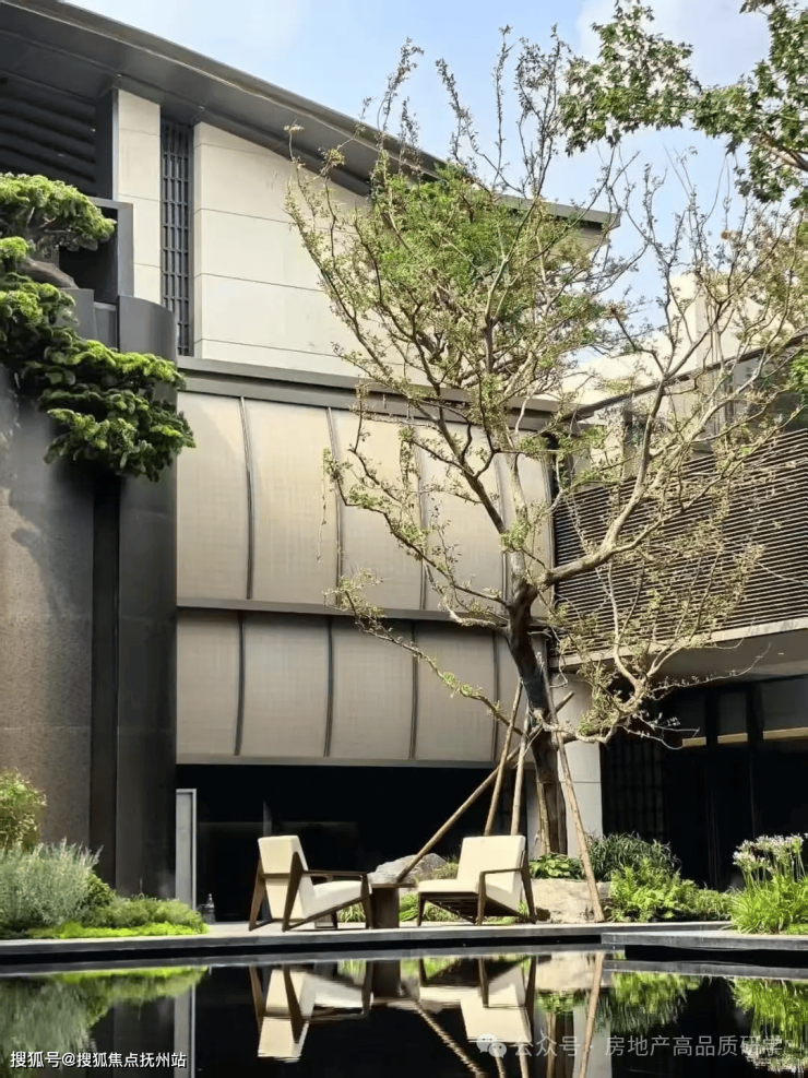 下沉庭院,“泗水归堂·帆影泽”,以现代手法诠释古典智慧,彰显空间美学的极致魅力。采用简约纯粹的米色石材为基调,巧妙融入深色石材线条,营造出艺术与韵律的和谐交融。步入此空间,随着空间逐层展开,您将深刻体验到逐步升级的情感价值。下沉庭院中,中央水景悄然升起,静水微澜,风起涟漪。元宝枫与朴树如同漂浮于水面,枝叶延伸至平台之上,水中的倒影映衬出别样景致。四周宽敞的游廊步移景异,立柱将庭院美景框入如画长卷。檐下的灰空间模糊了室内外的界限,让您在穿行之际,远离尘嚣,享受宁静。这正是金茂精准把握高端业主需求,展现出的敏锐洞察力。