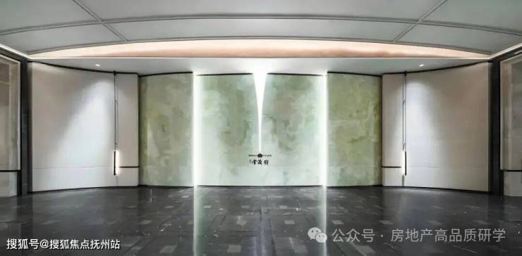 中央景墙采用4.9米高、近14米宽的波纹液态大理石,奠定整个入口的基调,垂直高度与空间的层次感彰显无遗。漫步于门庭长廊,宛如置身艺术殿堂,氛围深邃而雅致。