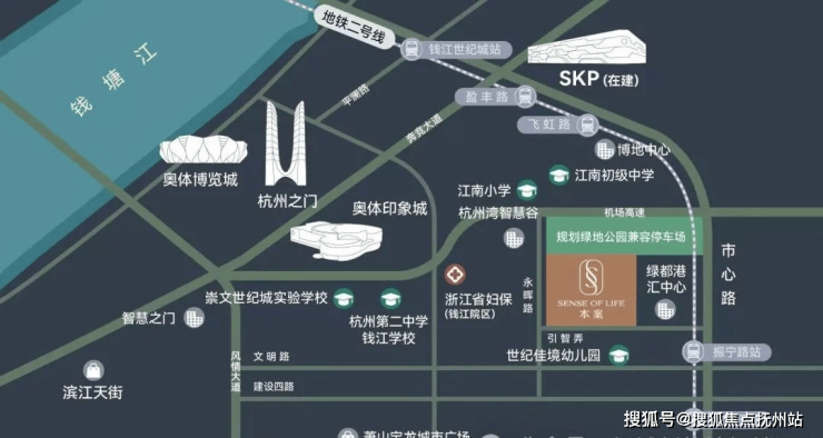 首当其冲的就是我们的交通,距离地铁2号线振宁路站B口直线距离仅约150米,2站到杭州SKP,4站达钱江新城核心,3站就能到萧山万象汇 ,出行别提多方便。