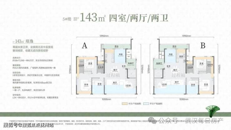 独立电梯入户,南北双阳台,大方厅。四个开间朝南,南向超15米面宽。大横厅设计,可以变成4+1房。不过一姐认为该户型不足之处是只有两个卫生间,没有做双套房。