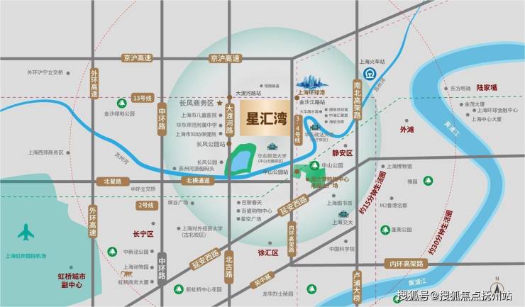 内环旁:五轨交汇;3号、4号、13号线金沙江路站(250米)、2号线中山公园站(1.3公里)、15号线长风公园站(1.6公里)