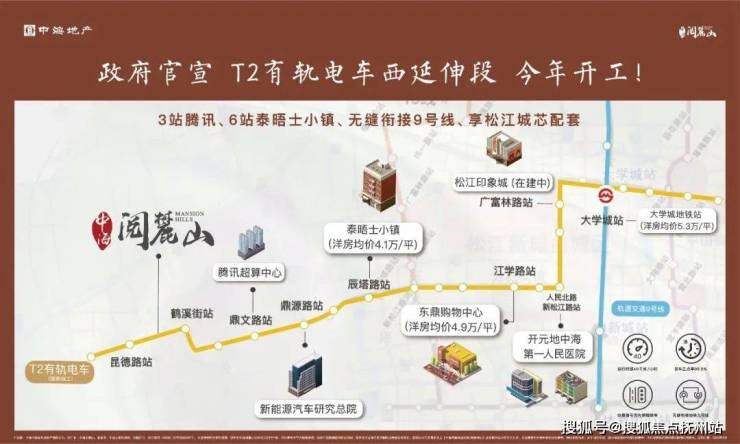 T2有轨电车对接9号线:规划中的T2有轨电车站点,未来可无缝对接地铁9 号线,快速到达松江新城站。