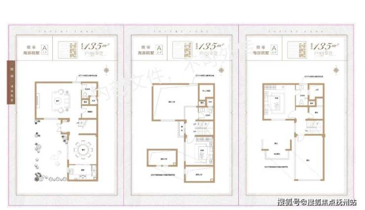 以135㎡联排别墅产品为例,该户型层高约3.3米,南向开间约7.6米,灵动空间包括约21㎡露台,约30.4㎡花园,满足购房者们“有天有地有花园”的别墅居住体验