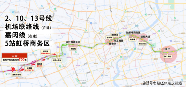 交通上,从嘉松中路站出发2站即到徐盈路站(天空万科广场)、3站蟠龙路站(新开业的蟠龙天地)、4站诸光路(国家会展中心)未来与13号线换乘、5站虹桥火车站(虹桥商务区),无缝换乘2号线、10号线、机场联络线、嘉闵线(在建),通达中山公园、静安寺、南京西路、陆家嘴、张江等核心CBD!
