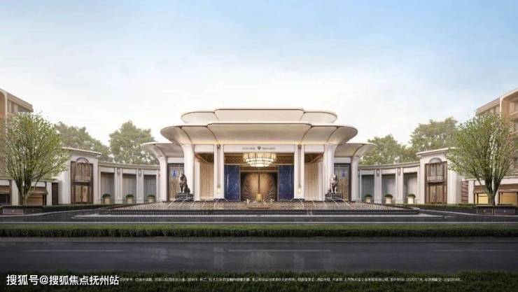 「玉兰门庭」摩登飘逸,环抱式落客前场,大师定制非遗掐丝珐琅门钹,流转温润光华,敬呈归家尊崇礼序,自此启幕生活的华贵序章。