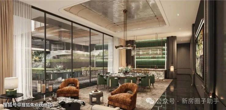设计师以东方摩登韵味打造双重下沉庭院,以高规格规划约4000方会所,集月华阁、健身中心、私宴及共享餐厅、行政酒廊、瑜伽馆、壁球馆、室内全龄恒温泳池为一体,以及高层全架空主题空间,完善全龄乐动的生活体系。