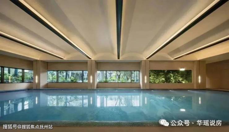 下沉式会所空间,借鉴苏式造园经典场景,比如恒温泳池双面都是通透玻璃窗,开窗可看园林叠级水景~
