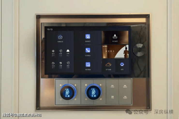 全屋配置智能灯光、电动窗帘、智能中控网关等智能设备,并集成于玄关智慧屏进行控制,令灯光、窗帘、温度随需而变,优雅从容。通过智慧屏极简集成旋钮面板,自如掌控中央空调、地暖、新风三大舒适系统。