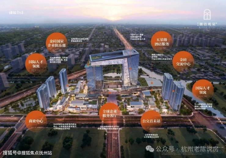 钱塘地标为邻:项目与金砖合作中心(中企国际港)直线距离仅约0.3km,江海之城重磅地标建筑,总体量约33万方,总投资约51亿,规划包含甲级写字楼,星级酒店,配套商业等。