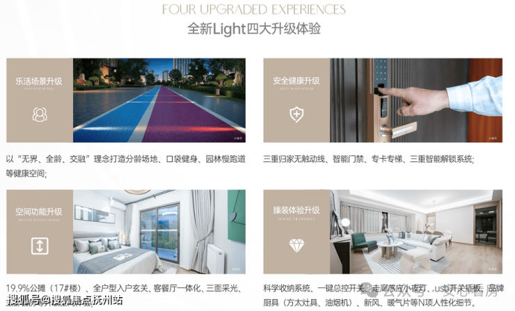 项目采用的都是保利旗下最高端、最前沿的产品LIGHT产品系,以“LIGHT”全新产品力体系,从乐活健康、幸福归家、优雅形象、快乐家庭、人性细节五个维度,打造新一代全生命周期产品,全方面焕新大临空人居。