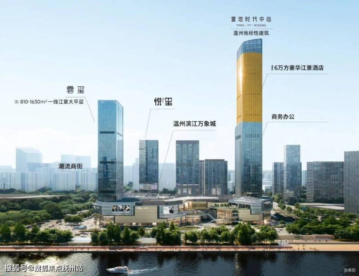 温州云玺,依托约70万方塔尖综合体,与温州滨江万象城、约318米甲级写字楼、豪华江景酒店、产权式酒店、潮流商街、一线瞰江大宅6大业态形成资源共同体。