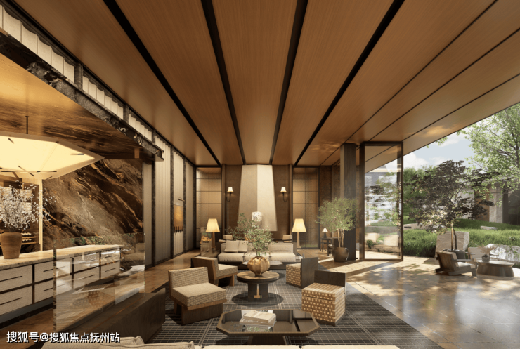 比起檐语间的平面园林,这里直接升级成立体山水!约1000㎡下沉庭院藏着叠瀑潺潺,一步一景,不是简单的绿植堆砌,而是能沉浸式逛的游园。