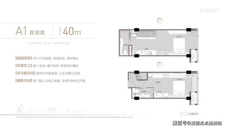 •2018年“限酒令”政策之后,商业小分割单位不得小于300㎡,小户型空间日益稀少。兴合·望江中心,建面约40-70㎡双钥匙/LOFT,占据钱江新城的黄金地段,席位愈加臻稀。