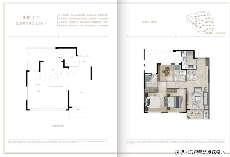 约98㎡边套,拥有约5.7米宽的餐客一体化纵向大边厅。朝南次卧面宽也有约3米,为生活留足空间,户型和118方类似。