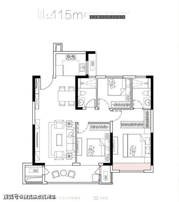 作为备受刚改群体认可的爆款户型,把空间利用做到了极致!三开间朝南+双阳台的同时,还能保证每个房间的尺度,主卧带有大飘窗,保证采光,又兼具舒适度。
