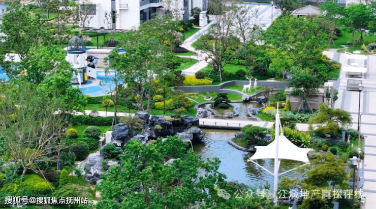 进入小区就能看到层级水景自天然山石间潺潺跌落,线状叠水如珠帘闪烁,层级跌水层层下落、韵律感十足,瀑布式叠水则气势磅礴。