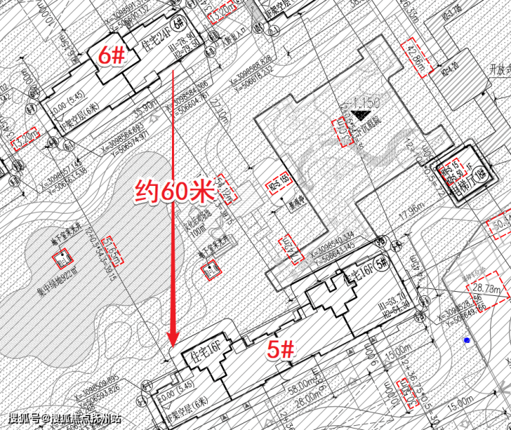 而6#正南楼间距在60米左右,楼距比大于1:1,预计大寒日正午低楼层的日照质量都还不错。