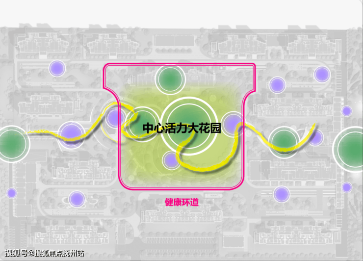 最终凝练为“星享量场”的设计概念,规划一轴(活力生活轴)、一环(健康环道)、一核心(中心活力大花园)。