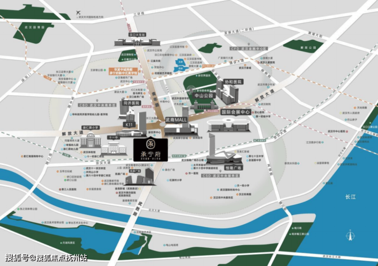 承宁府与香港中心、新世界酒店、甲级写字楼、高端豪宅及 K11 艺术购物中心为邻;举步可达武商 MALL 国广、恒隆广场两大顶奢地标;同济、协和双医疗巨擎左右相守。