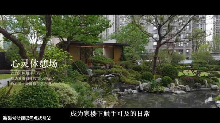 石桥、石阶,水瀑、水面,亭台有青松环抱,身心被绿意包裹。颇具古典意蕴的场景,成为家楼下触手可得的日常。