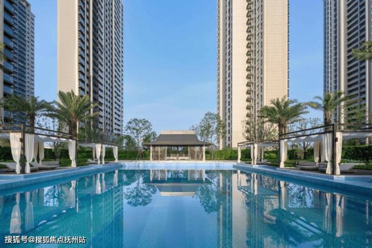 内部设有一个近600㎡的标准泳池和一个儿童戏水池,配合社区多个全龄共享的休闲架空层,使不同年龄段的住户都能在归家途中,快速地找到适合自身的活动空间。