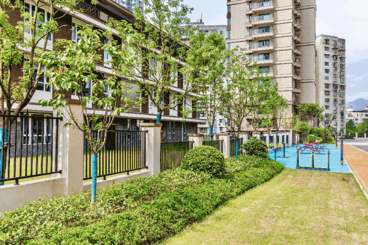 项目采用围合空间,形成集生态、文化、艺术于一体的园林景观,人性化配置休闲互动设施等,更是在细节之处彰显品质匠心。