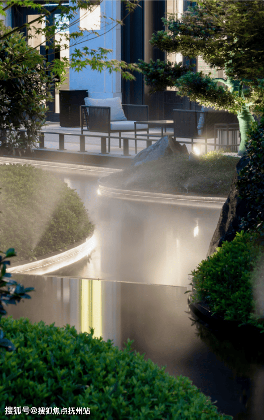 跨过庄重的府门,一席静谧水景映入眼帘,与对面的景墙遥相辉映,运河韵致的意境呼之欲出。景色会因时间的不同呈现不一样的美。白天,美景倒映在水面明亮清澈;夜晚,皎洁的月光柔和静谧。