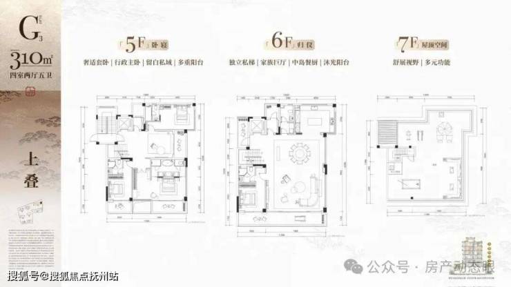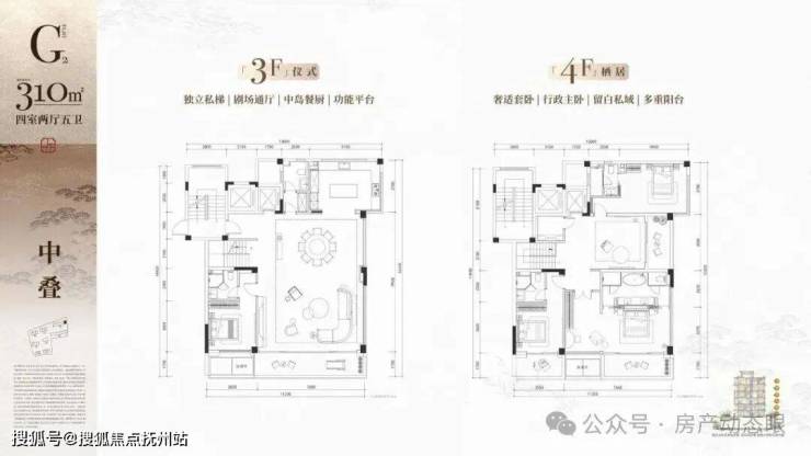 【顶层奢厅】:采用创新上入式设计,打破传统空间格局,将客厅置于顶层,推窗即揽城市天际线与塘河风光。