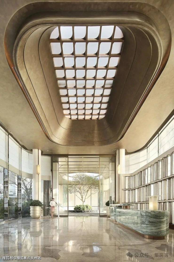 公建化的立面,四面铝板搭配大面积玻璃,阳台统一封包,底层的浅色天然石材还被打磨出弧线,脱去厚重外壳,轻盈洒脱。项目西侧直线约800米就是钱塘江,春来晴翠也在园区里编织了一幅山水画卷。