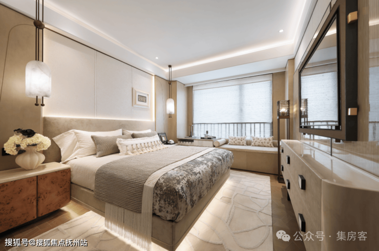 在春来晴翠园建面约169㎡晴翠户型中,最亮眼的设计显而易见——主卧90°转角窗,揽获270°环幕视野,将天光云影尽纳室内。不仅引入绝佳采光与风景,更成为一处心灵栖所。