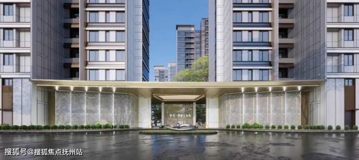 在板块内,荷语江山府是首个采用四面大面铝板一体板的楼盘,现代简约的立面,加上香槟金铝板塔冠,地标感十足。