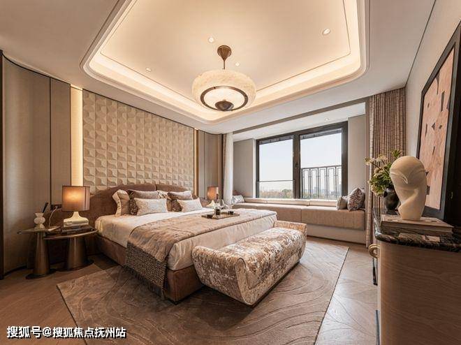 海派工艺细节:地面采用“海派大理石拼花”,灵感源自衡复老洋房的拼花地砖,墙面是“编织纹皮革硬包”,触感细腻且更耐脏,吊顶设计“天圆地方”呼应海派建筑的对称美学,室内门采用高度超2.8米的“通顶隐藏门”,视觉更舒展。