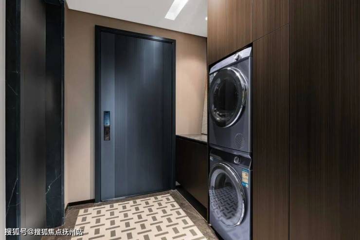 约13.2m南向采光面、约6.5m观景视野、主卧南向270°观景视野;设置独立家政间,将洗衣机、烘干机、收纳柜与清洁工具集中归置,有效隔绝洗衣噪音与视觉杂乱,让公共空间回归整洁与宁静。