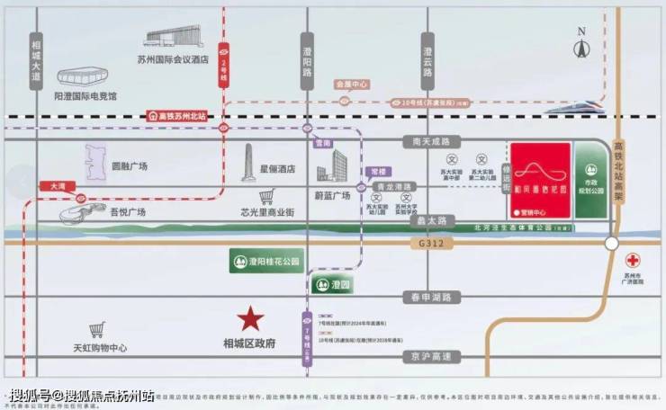 项目临近地铁7号线常楼站(预计2024年年底通车),4站相城区行政中心,10站中央公园;另外地铁2号线、4号线已开通运行,地铁10号线、12号、13号、15号线尚处规划阶段《苏州市轨道交通线网规划(2035)》。北侧南天成路,南侧G312国道,直上高铁新城立交,形成“中环+轨交+高速”的立体交通网络,快速通达园区、古城等苏州各个城区和苏南硕放国际机场等交通枢纽。