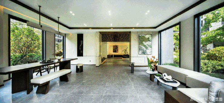 ◎ 删繁就简间,与城市界面彼此呼应,运用大面积玻璃搭配简约硬朗的铝线条,让风景更近、园林更近。