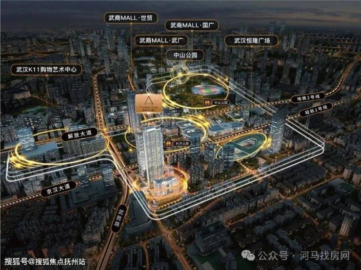 商业上,小区被武汉高奢商场环绕,最近的就是恒隆广场,步行200米左右就到了,同时摩尔城、K11、武汉国际广场距离项目的直线距离也不超过400米。