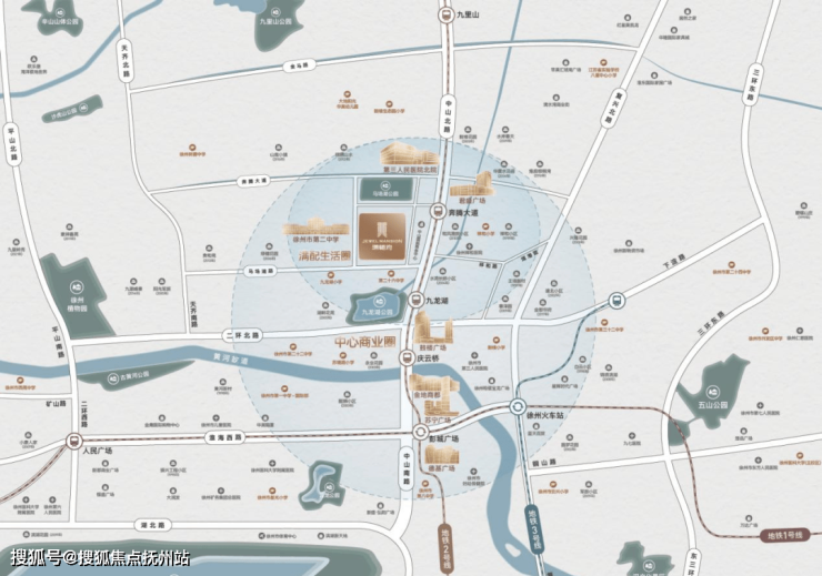 璟樾府深得此道,择址于徐州最为矜贵的鼓楼政务核心圈。其范围南至二环北路,北抵金马路,东临煤港路,西靠天齐路,占据着无可争议的城市中心地位。