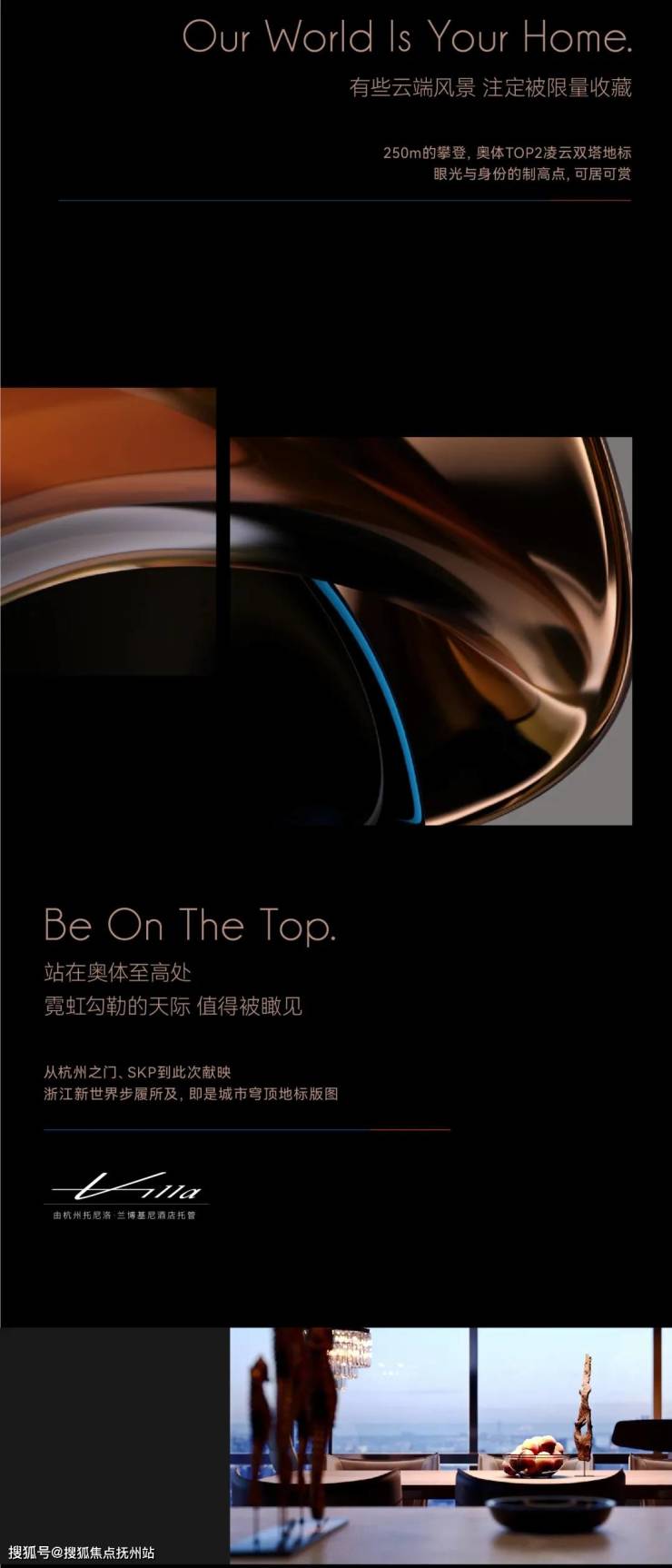 瑰郦中心在SKP东南约800米,地铁2号线飞虹路站口,是杭州之门后,奥体落成的海拔第二高双塔(约250米),外号“小杭州之门”。瑰郦中心L-VILLA位于T2塔楼,12层的裙楼就是托尼洛·兰博基尼酒店。