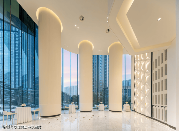 步入挑高约11米的一楼大堂,折线通高墙面与钻石切割前台 ,像极了兰博基尼发动机的散热鳍,又似来到澳门七星级酒店摩珀斯。