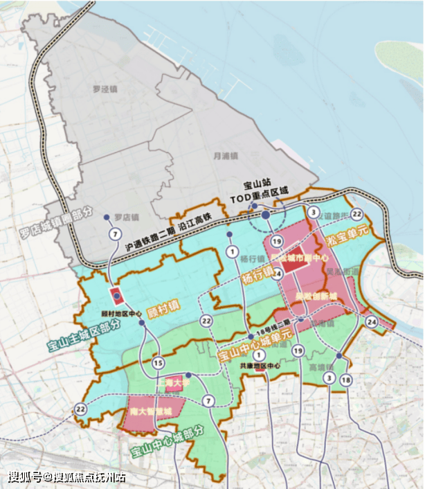 腾飞的步伐,离不开交通枢纽的推波助澜。《宝山区城乡总体规划纲要(2015-2040)》将杨行定位为上海市大轨道交通北枢纽,引领上海北部城市副中心建设,着力打造北沿江高铁的始发站——宝山站。