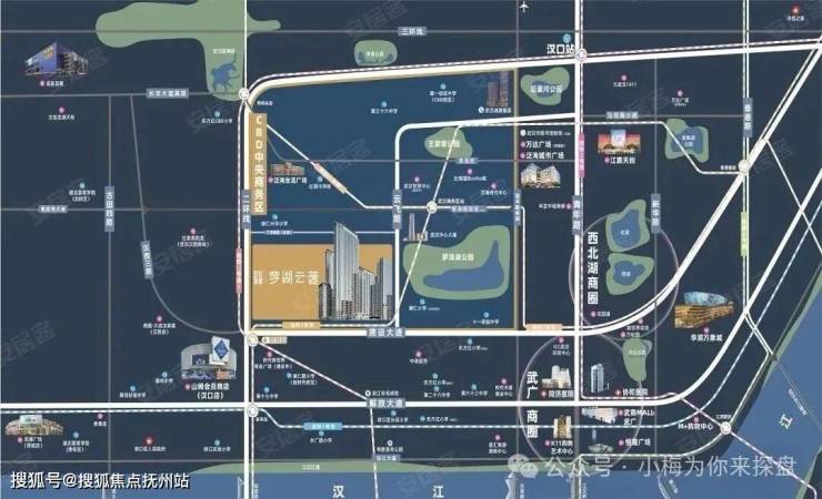 武汉城建梦湖云著位于建设大道与汉西路交汇处,楼市板块属于武汉CBD板块,行政划分属于硚口区,二环以内。该项目是武汉城建集团于2021年10月竞得的P(2021)142号地块。成交总价172900万元,成交楼面价约14777.8元/平。项目情况武汉城建梦湖云著占地面积约3.5万方,总建面约15.9万方,容积率3.24,共622户,机动车停车位1043个,住宅车位比约1:1.25。包含6栋住宅、1所幼儿园、1所办公楼、1栋独栋商业、1栋公租房。