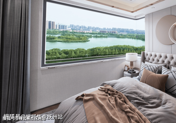 主卧空间亦是对常规户型的超越。约22㎡的奢阔尺度内,独立卫生间、预留的衣帽空间均从容布局,保障了主人的私密与尊贵。特别设计的270°转角飘窗,以无可比拟的视野,将湖光水色变为私属背景。这里不仅是休憩的场所,更是一个可供思考、放松、享受二人世界的浪漫空间,让每一天都始于美景,归于宁静。
